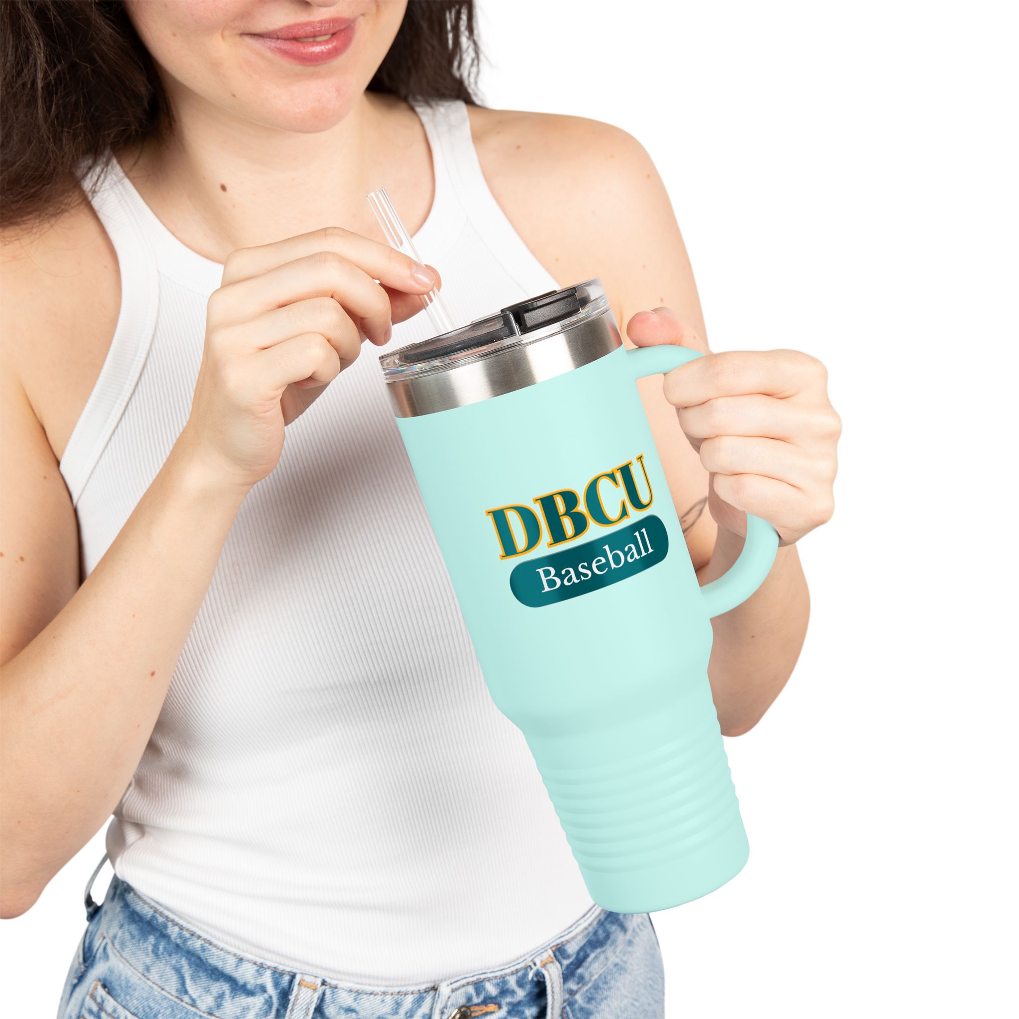 This 40oz insulated travel mug blends rugged utility with everyday style. Double-wall stainless steel keeps coffee piping hot on early morning practices and iced drinks refreshingly cold during long road trips. A secure leak-proof lid with an easy latch and included straw makes it simple to sip on the go, while the ergonomic handle gives a steady grip when you’re juggling gear and a to‑do list. Powder-coated finish and UV-DTF printed artwork resist wear, so the design stays crisp through weekends at the field and weekday commutes. Durable, BPA-free construction and large capacity mean fewer refills and more time living the day fully charged.