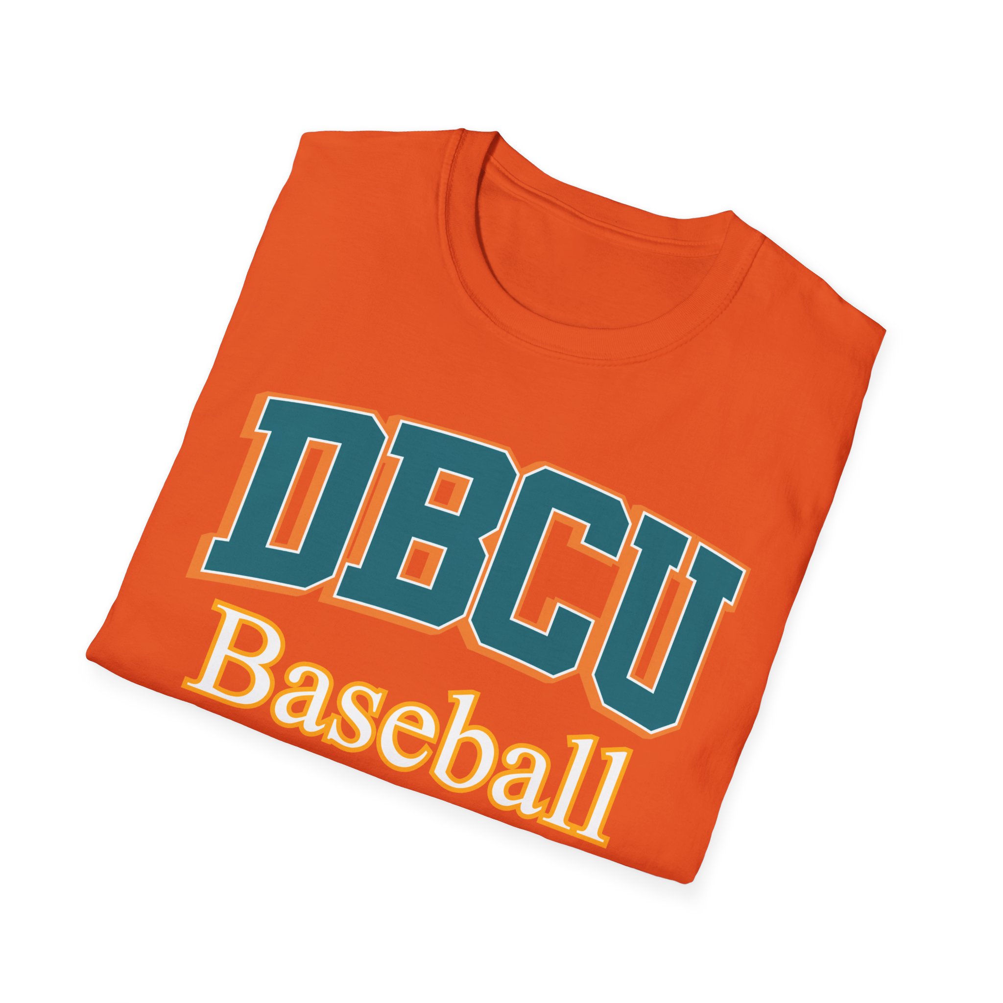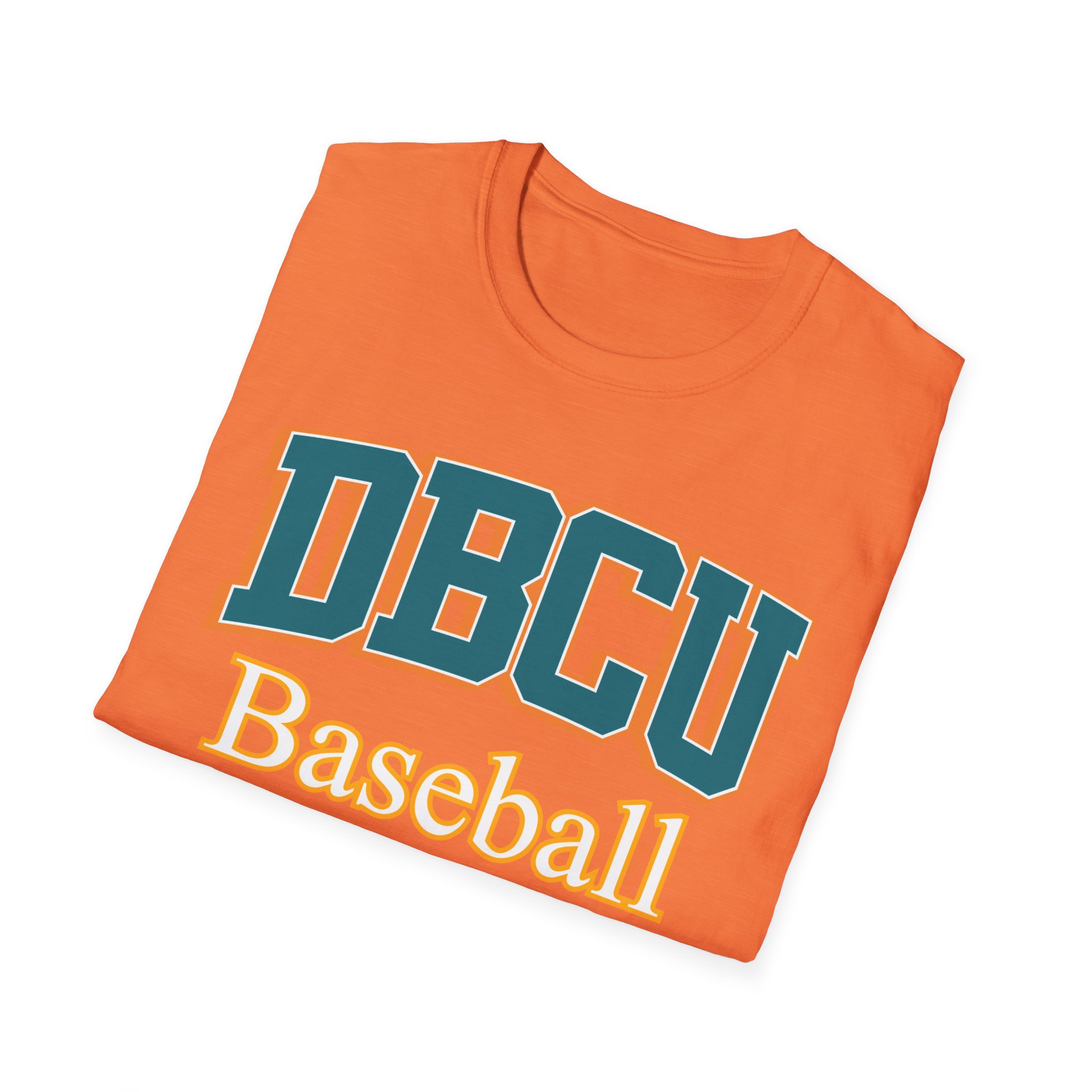 A soft, lightweight cotton tee with a bold collegiate baseball design — warm orange fabric with varsity-style “DBCU” lettering and a contrasting “Baseball” script beneath. The fine, ring-spun cotton feels smooth against the skin and drapes cleanly for everyday wear. This shirt carries a vintage-sport energy that slips effortlessly into practices, weekend games, or casual hangouts. It’s breathable for long afternoons in the sun and built to keep its shape thanks to ribbed collar and shoulder tape reinforcement. The tear-away label and ethically sourced cotton add quiet comfort and conscience to every wear.