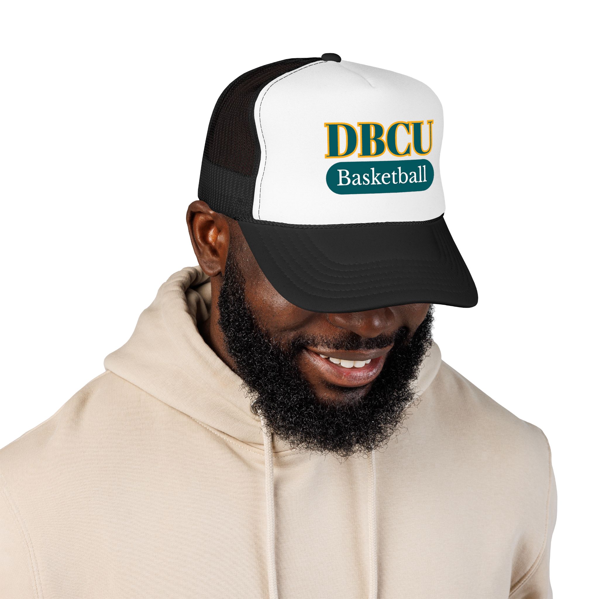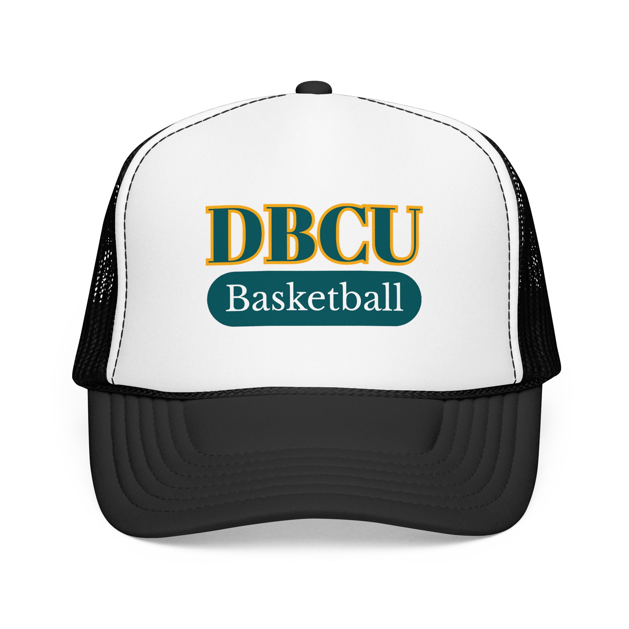 This foam trucker hat brings collegiate court energy into everyday wear. The high-profile, seamless foam front showcases bold embroidered lettering and a contrasting patch-like oval that reads “Basketball,” giving the cap a vintage team-feel. Breathable mesh panels keep the head cool during long afternoons outside while the pre-curved visor and eight rows of stitching hold shape through seasons of use. An adjustable snapback ensures a secure fit for most heads, and the thick, laminated foam front gives the hat a structured, substantial presence on the shelf and on your head. Wear it to practice, to the gym, or on weekends when you want a sporty, lived-in look that still reads sharp.