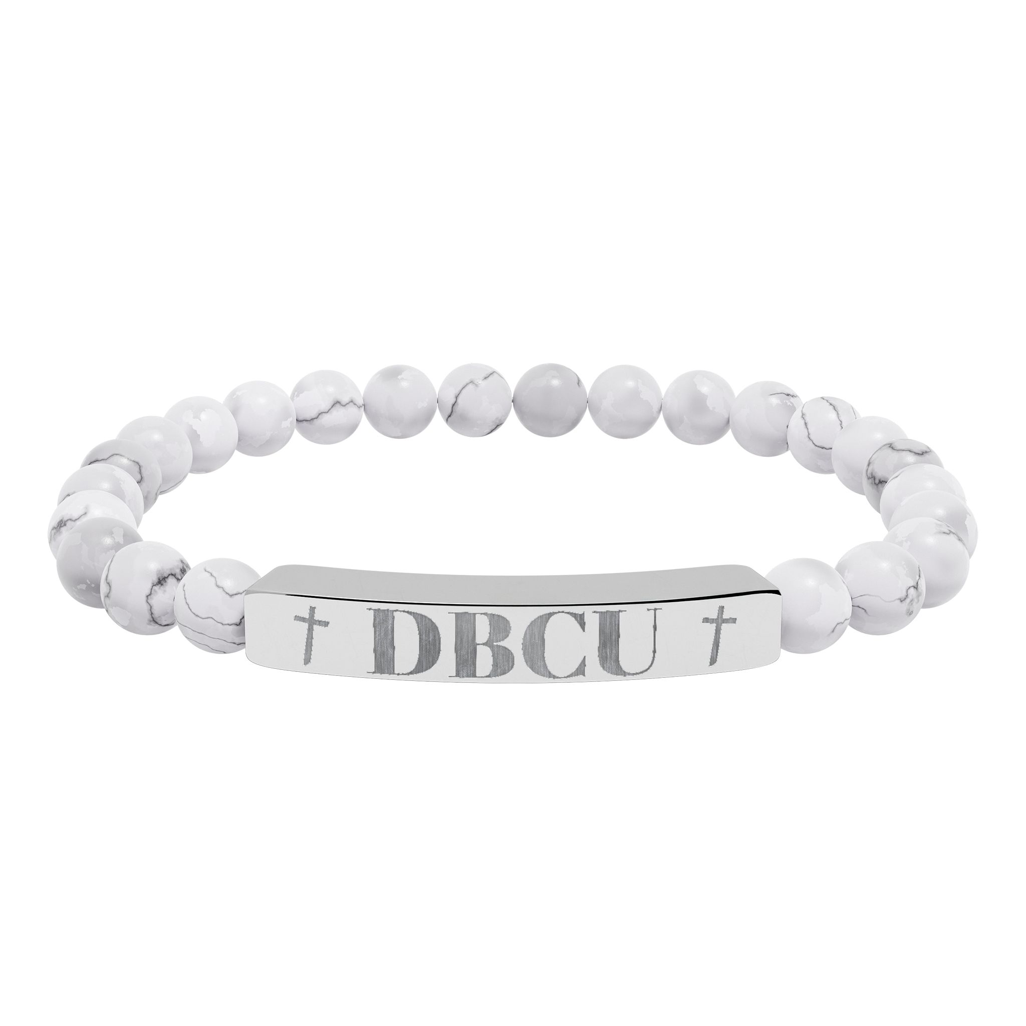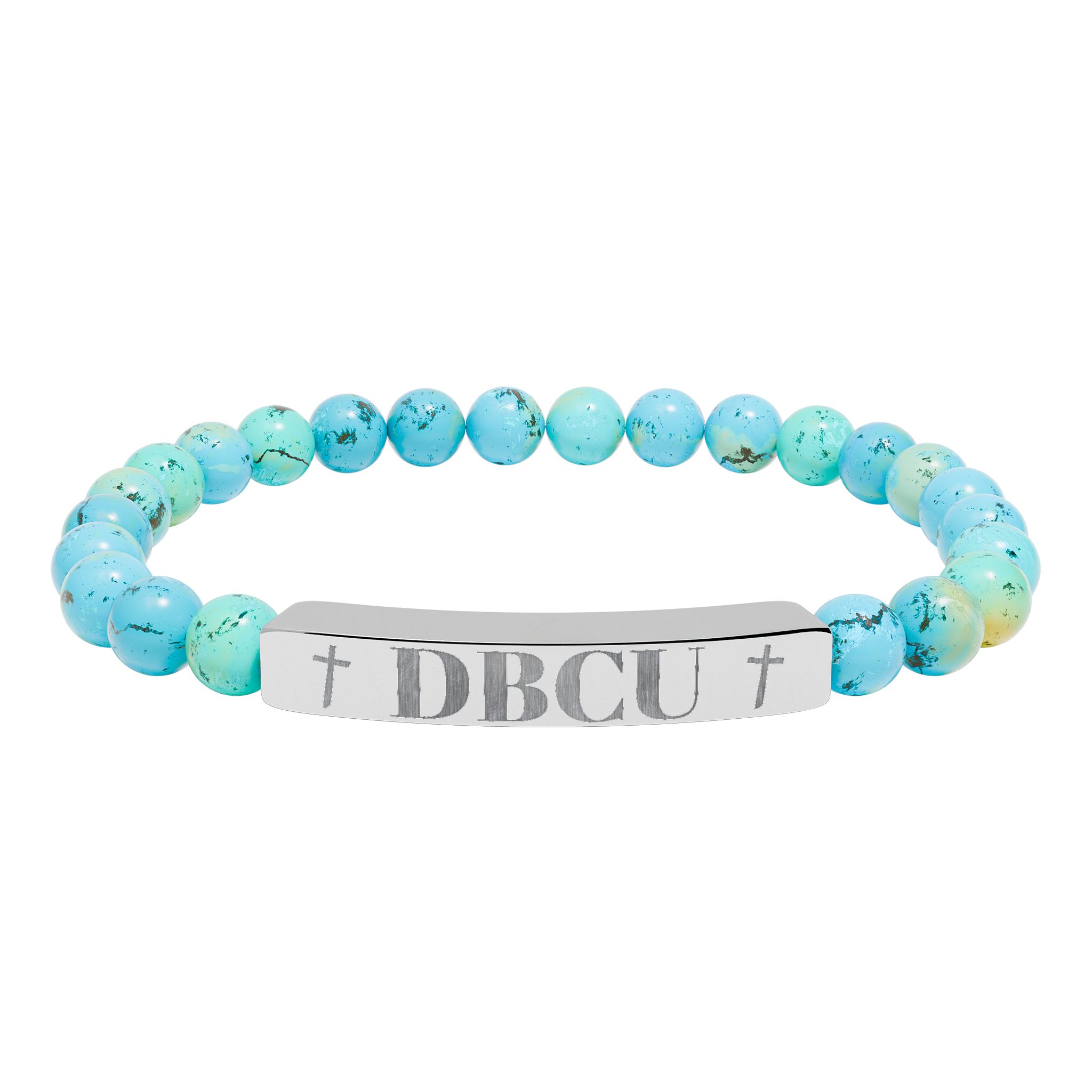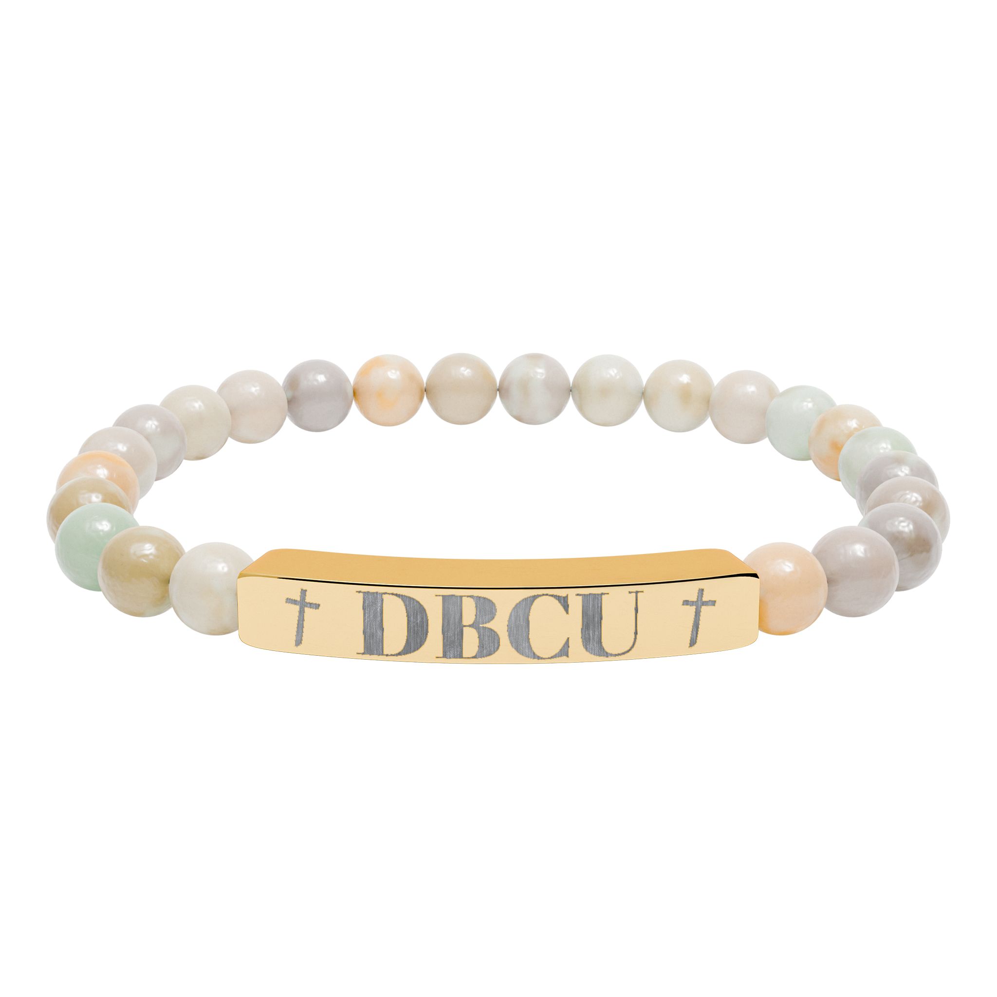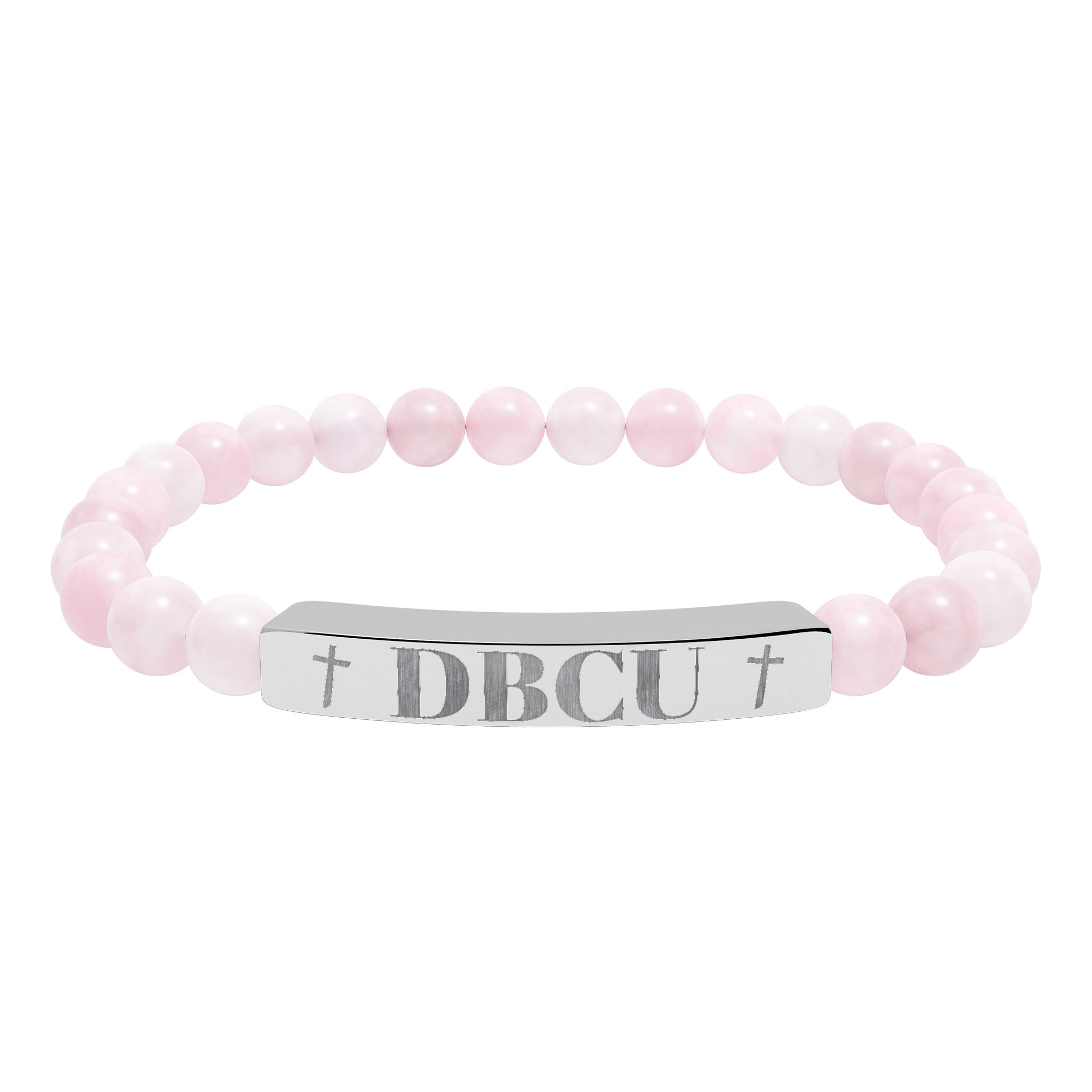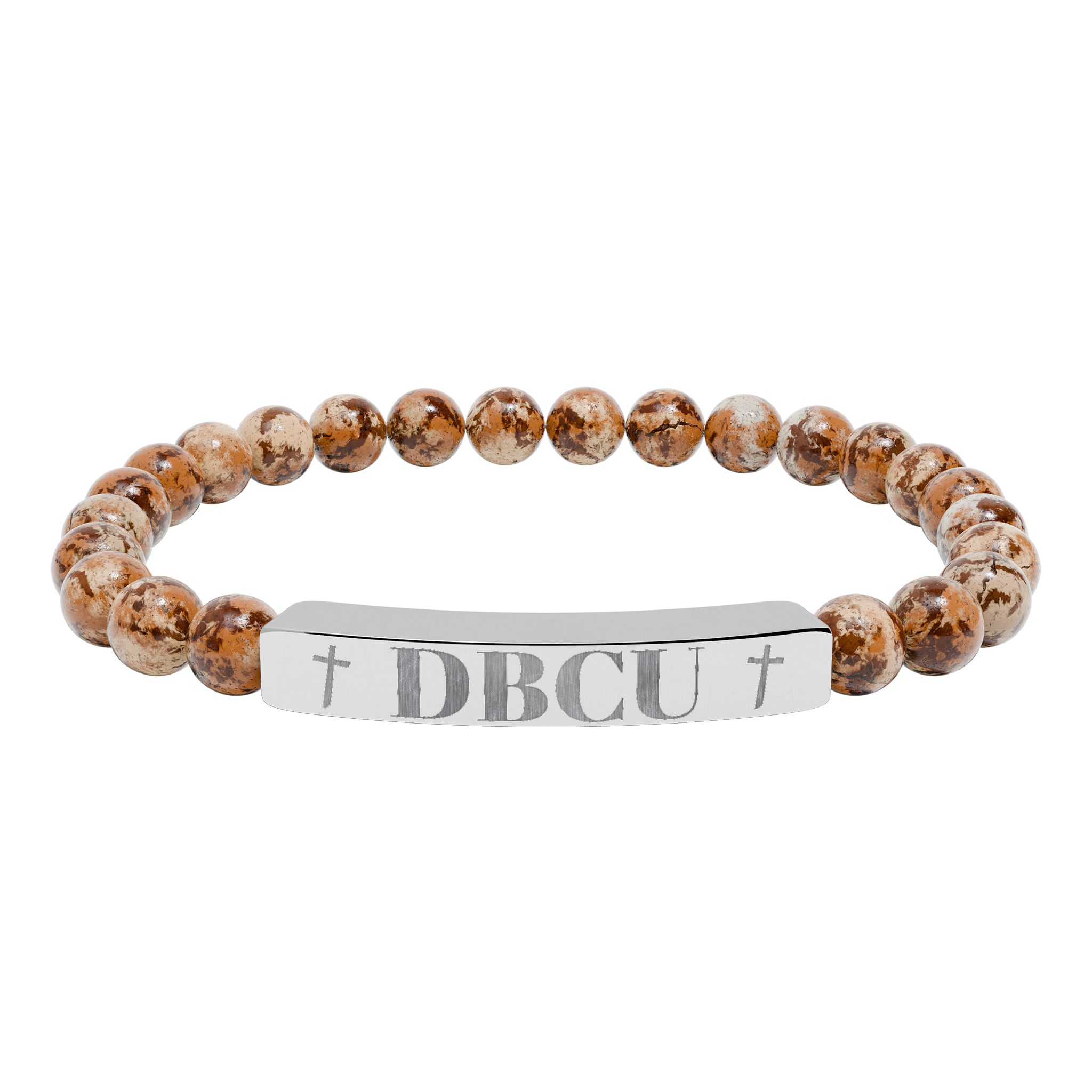 A calm, grounding stretch bracelet made from natural stone beads and a sleek engraved stainless steel bar. The soft, muted tones of the beads sit lightly against the wrist while the etched metal plate adds a subtle, handcrafted edge. It slips on easily and wears well every day — a quiet piece that carries a sense of balance and intention. Comes nestled in a white gloss jewelry box with non-tarnish cotton fiber for safekeeping.